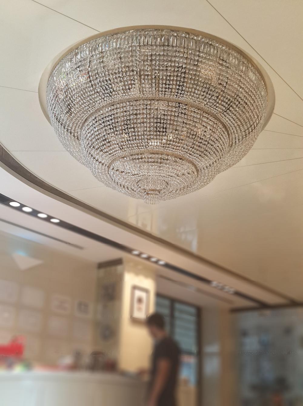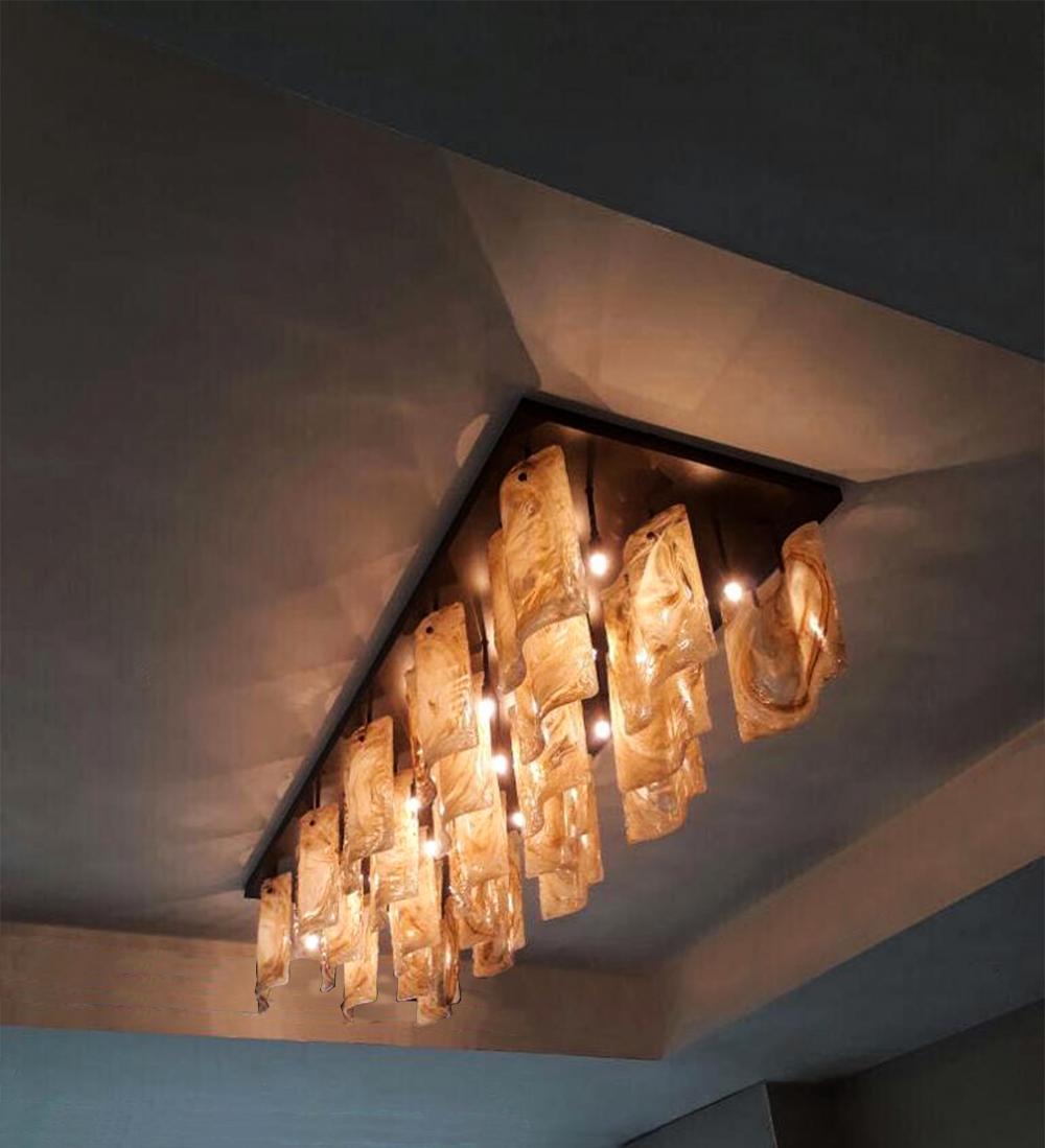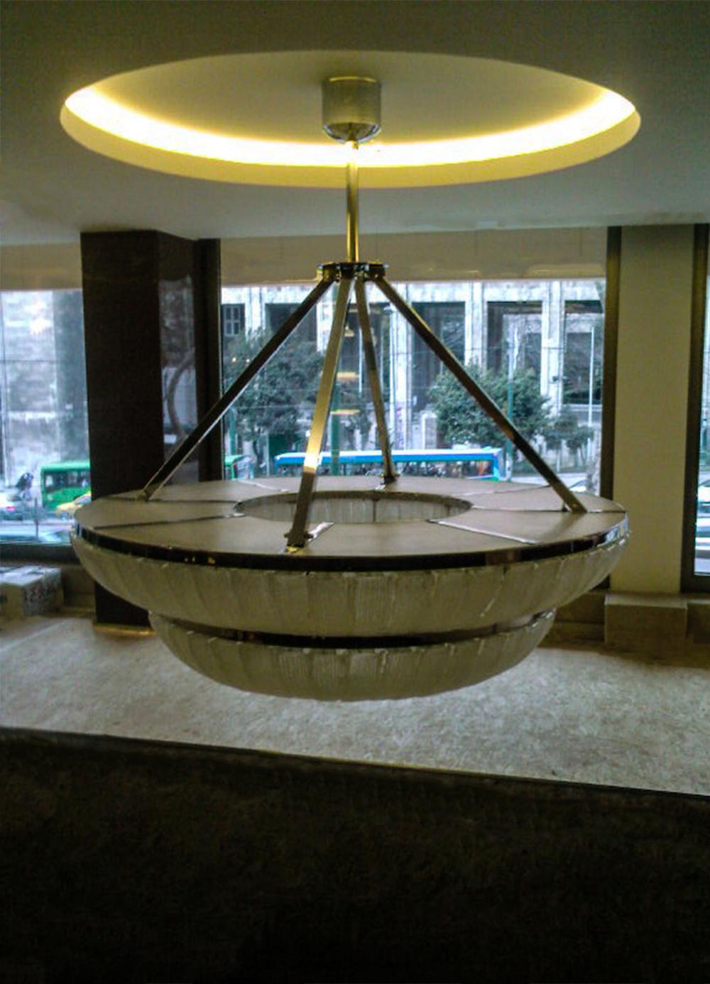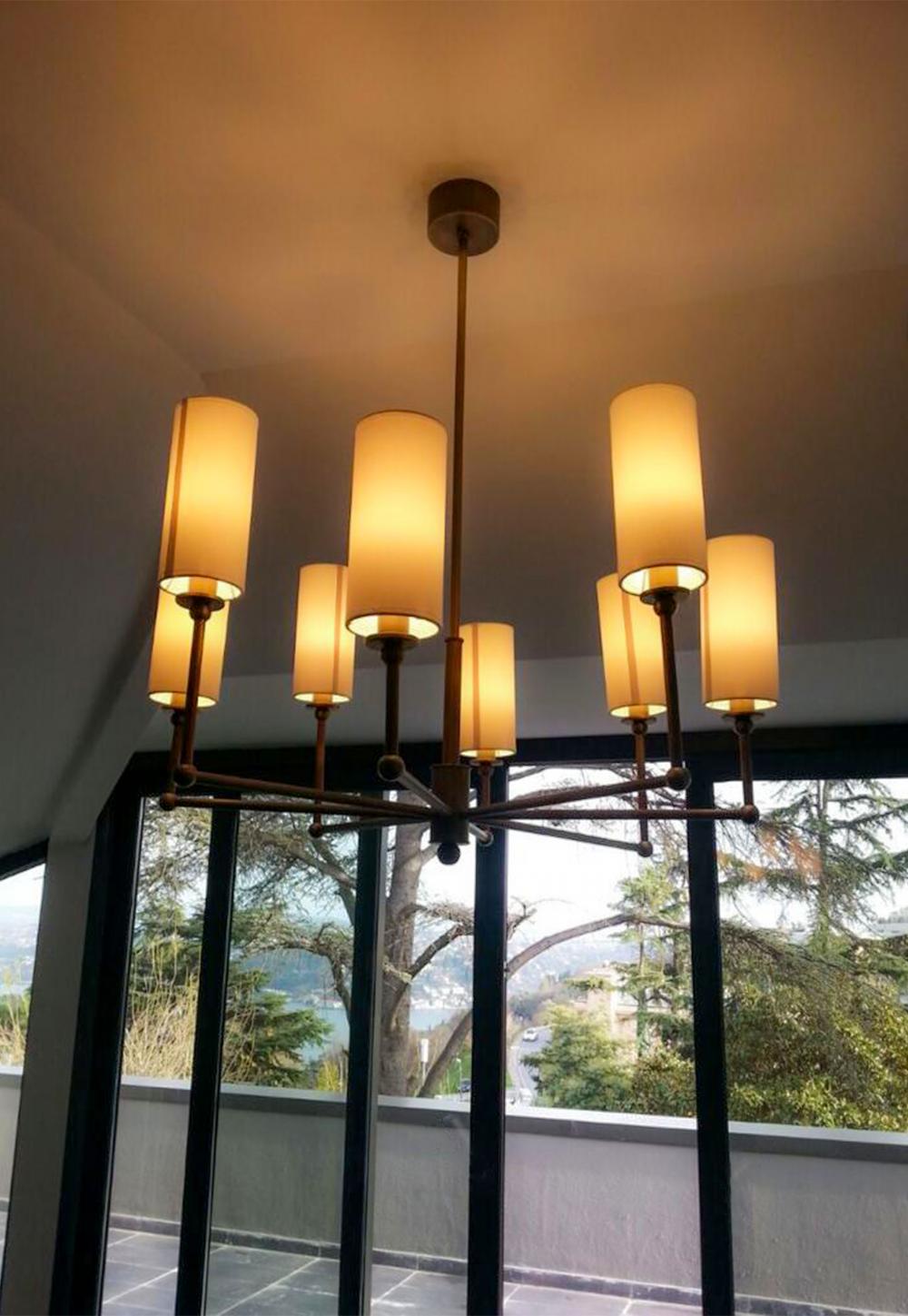 Avize, tavandan asılan, şamdan veya ampullü, cam veya metalden dekoratif aydınlatma aracı.
